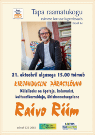 21. oktoobril 2025. a kell 15.00 Tapa raamatukogu esimese korruse lugemissaalis “Kirjanduslik pärastlõuana Raivo Riimiga”.
