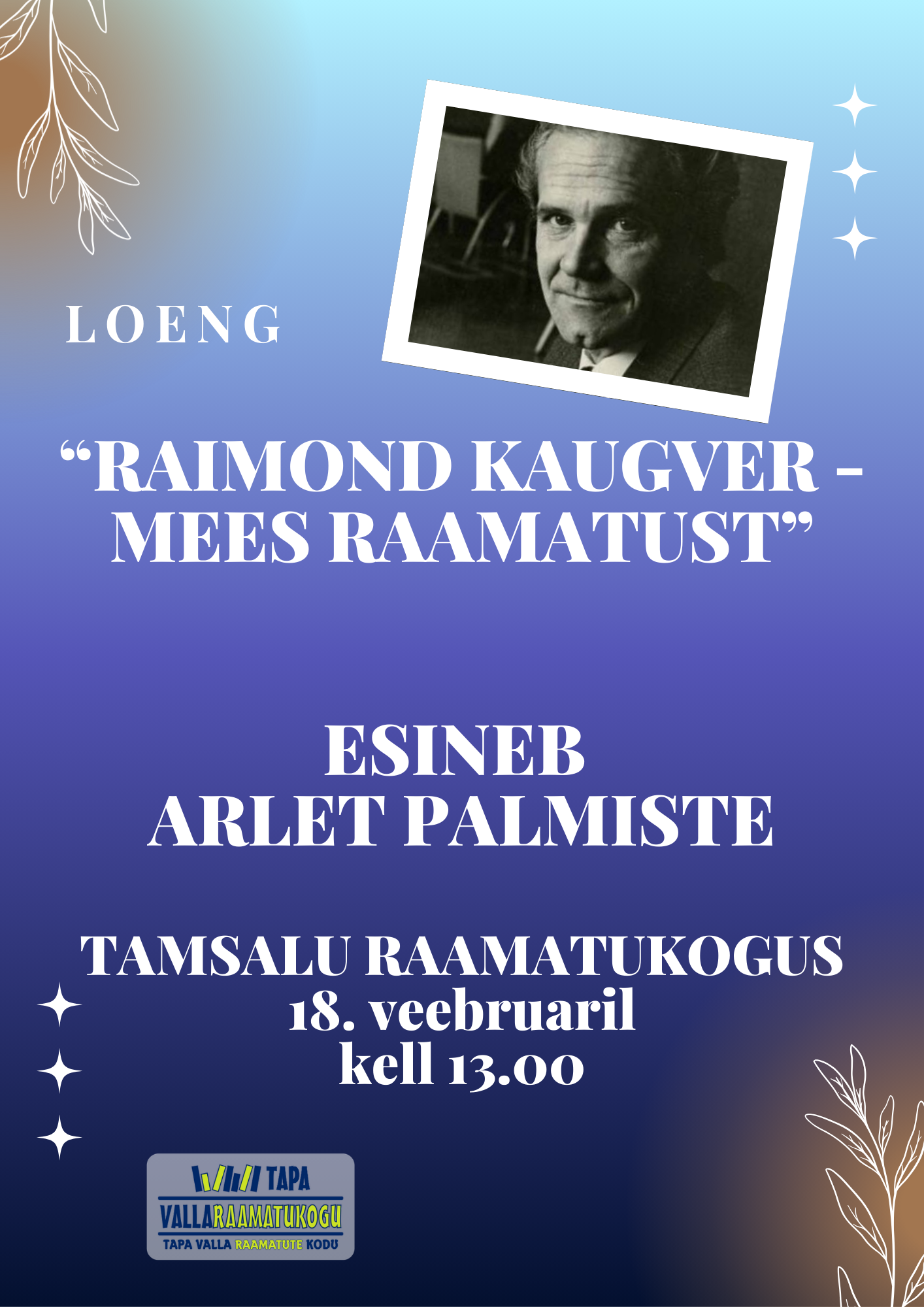 18. veebruaril 2026. a kell 13:00–14:00 Tamsalu raamatukogus üritus “Raimond Kaugver – mees raamatust”.